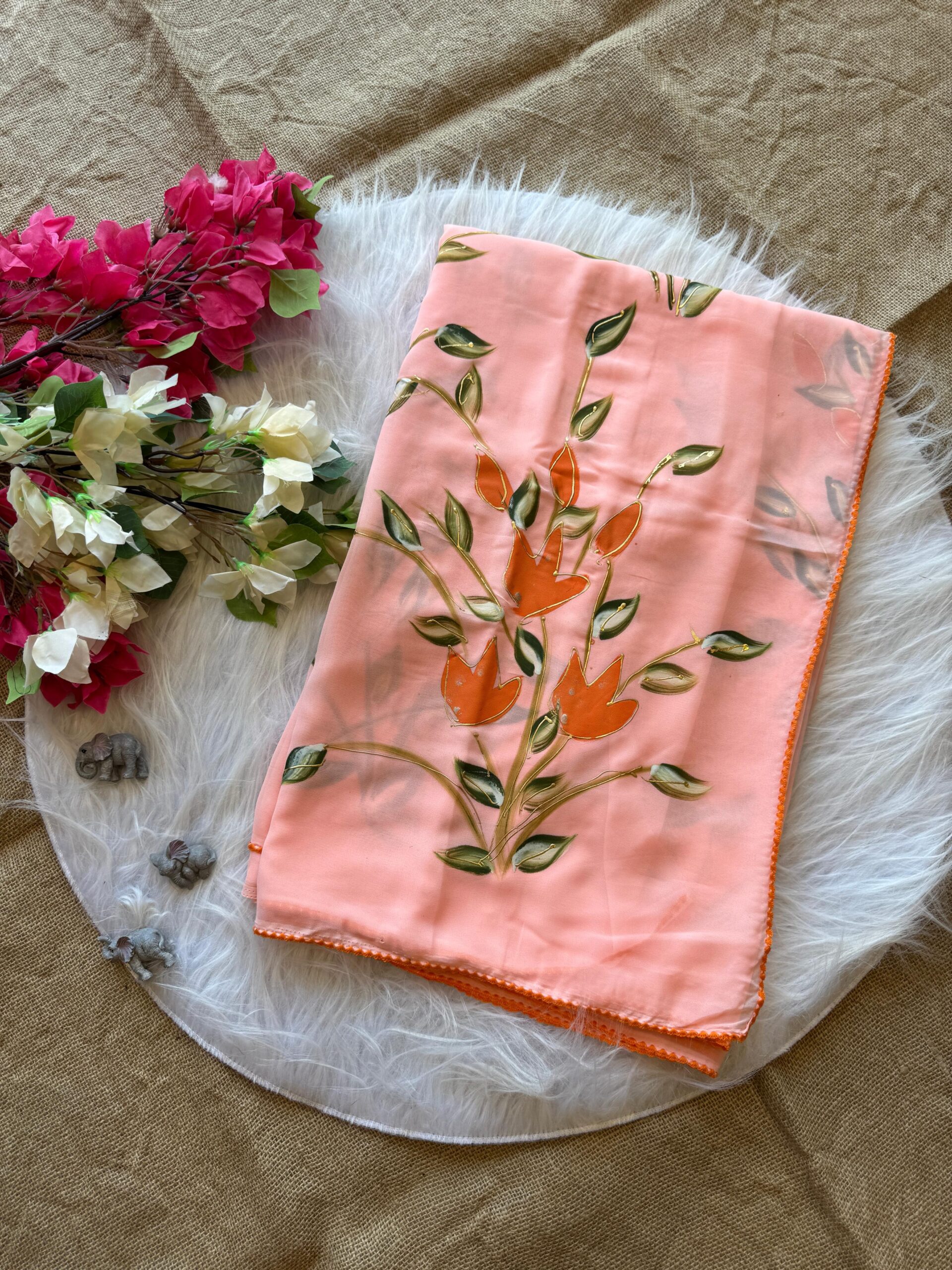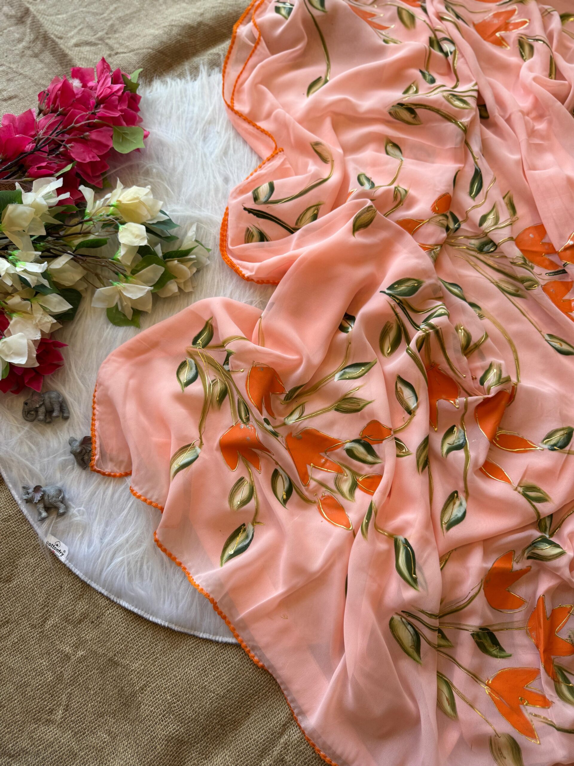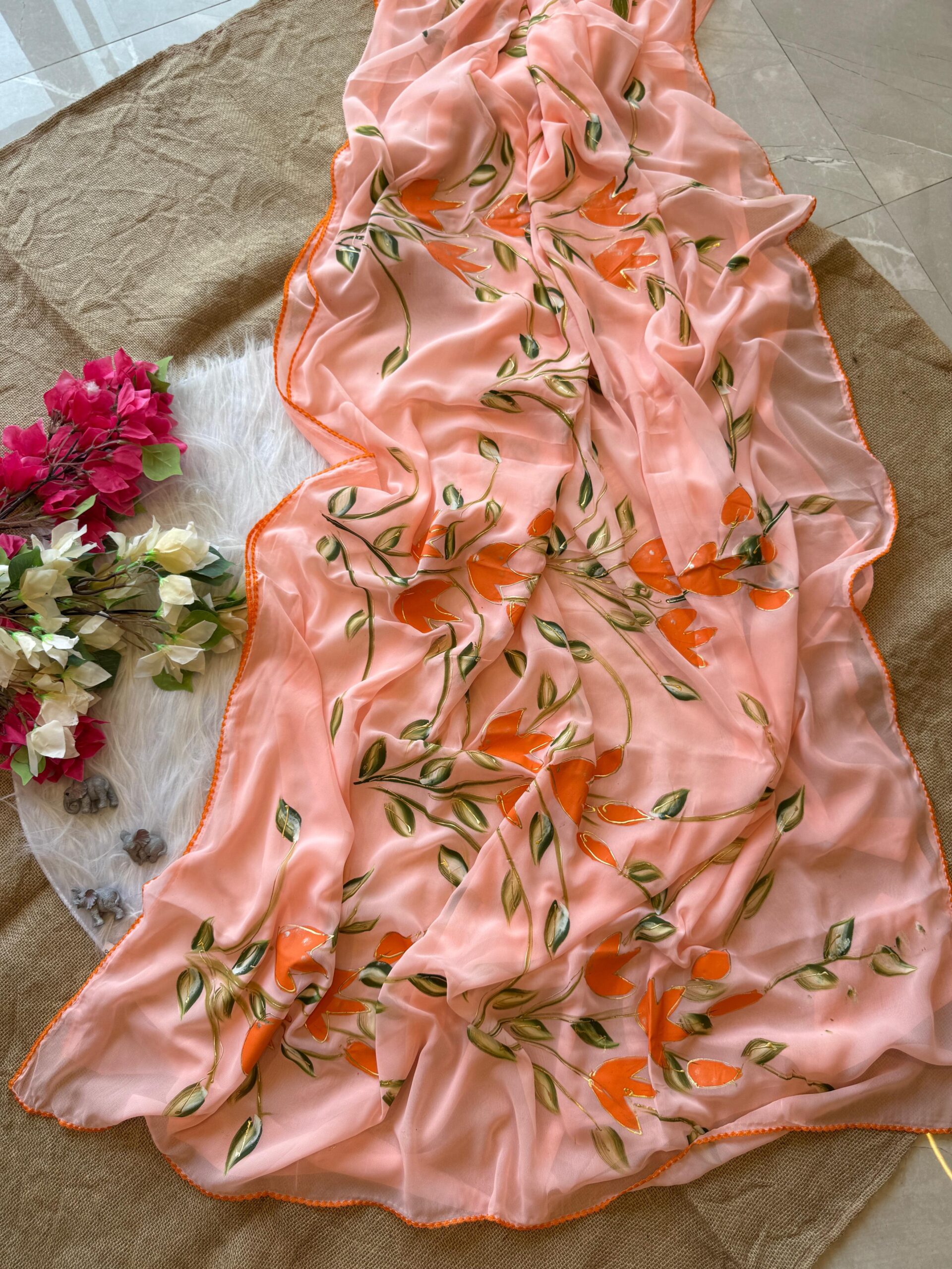 Semi Gorgette Handpainted Saree